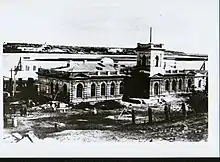 El edificio fue construido entre 1897 y 1898 e inaugurado un año después.[2] La estación fue reconstruida en 1906 y 1907 en formas arquitectónicas típicas del clasicismo como altas ventanas arqueadas o la decoración de la fachada principal en forma de pórtico. En 1936 los dos edificios erigidos en diferentes momentos de transición fueron realizados en el mismo estilo arquitectónico clásico.