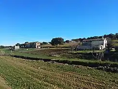 ![]() En primer plano, casilla ferroviaria. Al fondo, edificio de viajeros (enero de 2019). | ||