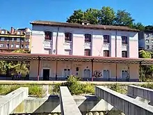- Oficinas: situado junto a las vías, es un edificio de ladrillo, curvo, en cuya cornisa se puede leer "FCL"