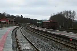 El edificio de viajeros, construido en piedra, está formado por un cuerpo central y dos anexos laterales. Cuenta con dos andenes curvados, uno lateral y otro central y con cuatro vías. Los cambios de andén se realizan a nivel.