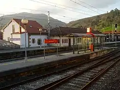 Cuenta con un edificio de viajeros, de base rectangular y una planta, y cuatro vías, tres de ellas accesibles desde los andenes lateral y central.