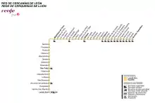 La línea C-1f ofrece servicios entre León y Cistierna/Guardo Apeadero.