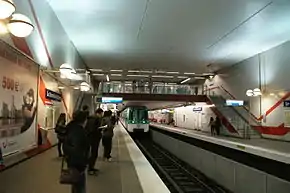 Es una estación subterránea, compuesta de dos andenes laterales y de dos vías. Su inhabitual diseño es muy similar al de la Estación de Villejuif - Louis Aragon que también se encuentra en este ramal de la línea. Recurre a azulejos blancos aunque estos son de un tamaño mucho menor a lo habitual y su colocación se realiza en diagonal. Tampoco sigue el esquema de bóveda ya que su techo es plano y las paredes, que muestran algunos tramos de color rojo, son verticales.