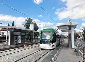 ![]() Una unidad de la línea 1 metro de Granada a su paso por la estación. | |||||||||