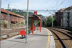Se sitúa al suroeste del municipio. El edificio de viajeros es una clara muestra de la arquitectura local. Es de base rectangular, de dos alturas, en piedra y está recubierto por una amplio tejado en pico de dos vertientes desiguales. Dispone de dos andenes uno lateral y otro central y de cinco vías.