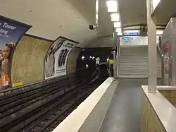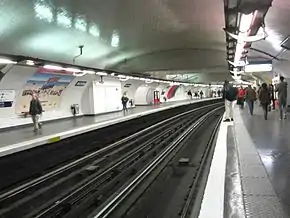 Está diseñada en bóveda elíptica revestida completamente de los clásicos azulejos blancos biselados. Su iluminación ha sido renovada empleando el modelo vagues (olas) con estructuras casi adheridas a la bóveda que sobrevuelan ambos andenes proyectando la luz en varias direcciones.