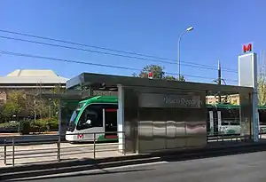 La construcción de la estación implicó la reorganización de la calle. Las vías transcurren segregadas a un lateral de un gran paseo peatonal que recorre toda la avenida. Para la construcción de los andenes se plantaron nuevos árboles y se eliminaron plazas de aparcamiento. También se creó un carril bici transversal a la avenida integrado en el área peatonal.