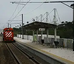 Esta plataforma disponía, en 2007, de un sistema de información al público, que era realizada desde la Estación de Faro.[1] En 2009, poseía dos vías de circulación, ambas con 396 metros de longitud útil, y dos plataformas, teniendo cada una 150 metros de extensión y 90 centímetros de altura.[2] En enero de 2011, ya habían sido modificadas las vías, que pasaron a contar, cada una, con 414 metros de longitud; ambas plataformas fueron rebajadas a 70 centímetros de altura, no habiendo sufrido modificaciones en la longitud.[3]