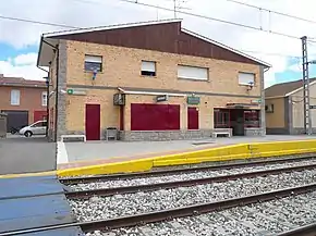 Se sitúa al suroeste del núcleo urbano. Como otras estaciones de este tramo su antiguo edificio para viajeros ha sido sustituido por una construcción más reciente de corte funcional. Posee dos plantas usándose la parte de arriba como vivienda. Cuenta con cuatro vías a las que acceden dos andenes, uno lateral y otro central. Dispone de un aparcamiento habilitado.