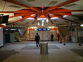 Hay que distinguir dos estaciones diferentes: la de la línea A, subterránea que se compone de dos andenes laterales y de dos vías y la de la línea E, situada en superficie por encima de la primera y que usa dos andenes centrales al que acceden cuatro vías.