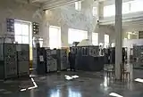- Interior del edificio principal de la estación de radio en Grimeton en el municipio de Varberg con el equipo del transmisor