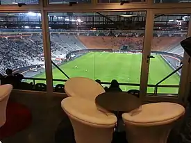- Es el aforo total, permitiendo la permanencia de simpatizantes parados. La capacidad máxima de espectadores sentados para los que se habilita el estadio es de 43 000.
