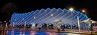 El exterior del estadio, compuesto por una serie de paneles dispuestos en forma de escamas superpuestas que se pueden iluminar por la noche, está inspirado en el efecto de remolino de las danzas tradicionales del Cáucaso, en particular el Khorumi.
