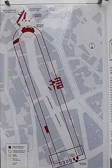 Como ocurre en otros edificios imperiales para eventos multitudinarios, el estadio tenía sus asientos de honor (en latín ima cavea) que albergaban inscripciones en bloques marmóreos; también se han hallado inscripciones en griego, demostrando que existían asientos reservados para miembros de la alta sociedad.[1]