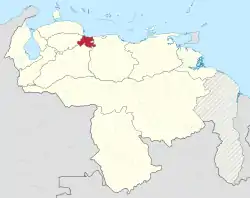 ![]() Localización del estado Carabobo en los Estados Unidos de Venezuela | ||||||||||||||||||||||||||||||||||||