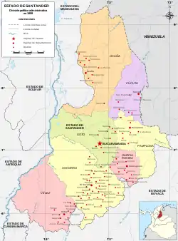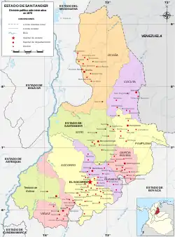 ![]() Localización del estado de Santander en los Estados Unidos de Colombia | |||||||||||||||||||||||||||||||||||