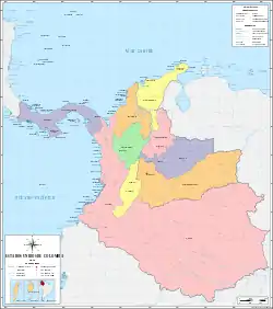 Las fronteras sostenidas por los Estados Unidos de Colombia, con base en el uti possidetis iure de 1810, fueron las siguientes:[8][9]