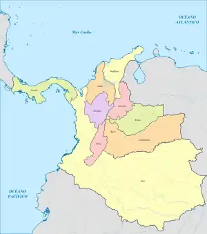 • Región Atlántica, que se extendía por toda la costa del Caribe, desde la Guajira hasta el Urabá.