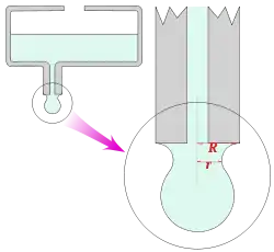 En 1864, Thomas T. Tate estudió el desprendimiento de una gota de un tubo capilar.[1] Tate concluyó que en dicho desprendimiento el peso de la gota iguala a la fuerza de la tensión superficial. Dicha fuerza es el producto del perímetro del estrechamiento, que es , por la tensión superficial . Por tanto
