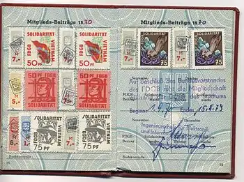 Libreta de un miembro de la Federación Alemana de Sindicatos Libres (RDA, 1970s) | |
