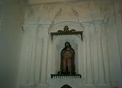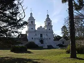 Más de un siglo después de adquirir la estancia en 1754, los misioneros jesuitas terminaron de erigir la iglesia. Su imponente fachada, flanqueada por dos torres y un portal en curva, es de líneas y ornatos gráciles, con pilastras y frontones curvos. En su interior fascina la armonía de las proporciones: una sola nave en cruz latina que culmina en la cúpula circular con ventanas en la bóveda, el gran retablo del altar mayor tallado en madera y dorado, en el que se destaca un lienzo representativo de Santa Catalina de Alejandría, patrona de la estancia;[3] una imagen de vestir del Señor de la Humildad y la Paciencia, y la talla policromada de un Cristo crucificado.