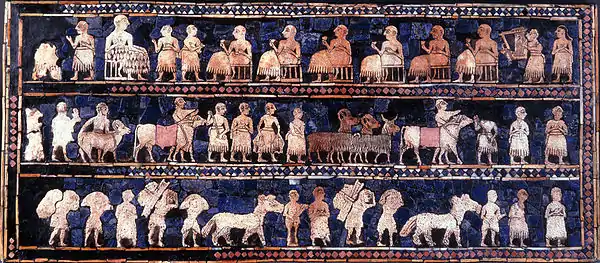 ![]() El "panel de la guerra" del Estandarte de Ur | ||