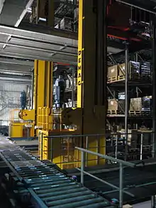 - Automatizada: Dispone de un sistema automatizado de carga y descarga de palets, normalmente un transelevador en cada pasillo. Permite optimizar tanto la altura de almacenamiento como la capacidad de almacenamiento en planta ya que reduce de manera drástica la anchura de los pasillos.
