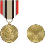 - También se puede encontrar en el reverso de la condecoración de la Medalla de la Campaña de Irak autorizada para otorgarse a los miembros del ejército de los EE. UU. que se despliegan en Irak en apoyo directo de la Operación Libertad Iraquí.