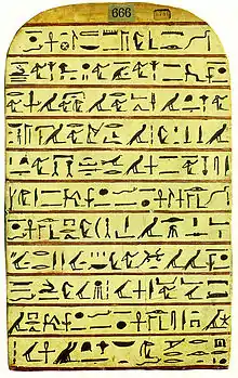666-Estela de revelación- etiqueta del Museo de El Cairo