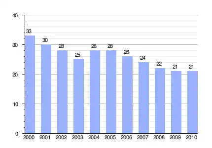 Población de derecho (2000-2010) según los censos de población del INE a 1 de enero de cada año.[4] |