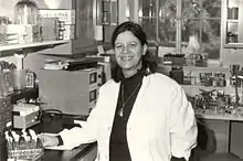 ![]() Esther Lederberg en su laboratorio de la Universidad de Standford, 1977 | ||