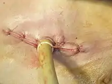 Una forma conocida de estoma artificial es la colostomía, una apertura quirúrgicamente creada en el intestino grueso que permite la retirada de excrementos del cuerpo, evitando el recto, drenándose en una bolsa u otro mecanismo similar. La práctica histórica de trepanación era también un tipo de estoma.