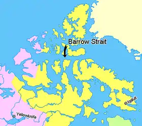 - Esta obra contiene una traducción derivada de «Barrow Strait» de Wikipedia en inglés, publicada por sus editores bajo la Licencia de documentación libre de GNU y la Licencia Creative Commons Atribución-CompartirIgual 3.0 Unported.
