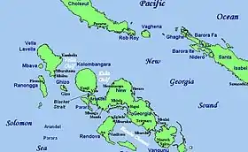 Isla | Choiseul, Santa Isabel, islas Florida, Vella Lavella, Kolombangara, Nueva Georgia, islas Russell, Bougainville y Guadalcanal | |