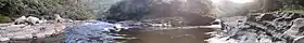 Las aguas en esta parte del río son de un color verde claro en el estrecho y unos metros más abajo podemos ver la claridad de las aguas que permiten observar las arenas del fondo, es decir que hasta este lugar está muy poco contaminado.