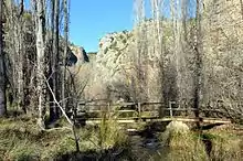 - Detalle de puente de madera a la entrada a los Estrechos del Cañamar, Ruta de los Estrechos del Ebrón, en Tormón (Teruel).