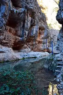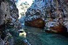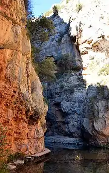 - Detalle de la entrada a los Estrechos del Cañamar, Ruta de los Estrechos del Ebrón, en Tormón (Teruel).