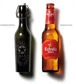 ![]() Botellas antigua y actual de Estrella Damm. | ||