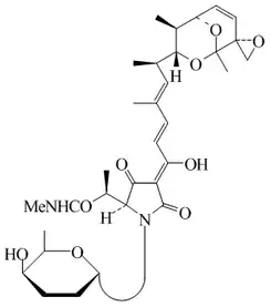 InChI=InChI=1S/C32H44N2O9/c1-16(14-17(2)28-18(3)23-12-13-32(15-40-32)31(6,42-23)43-28)8-9-22(36)25-27(37)26(19(4)29(38)33-7)34(30(25)39)24-11-10-21(35)20(5)41-24/h8-9,12-14,17-21,23-24,26,28,35-36H,10-11,15H2,1-7H3,(H,33,38)/b9-8+,16-14+,25-22+/t17-,18+,19+,20+,21+,23-,24+,26+,28-,31-,32-/m1/s1