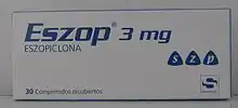 La eszopiclona (S)-6-(5-Clor-2-piridil)- 6,7-dihidro-7-oxo-5H-pirrolo[3,4-b]pirazin- 5-il-4-metil-1-piperazincarboxilato es el enantiómero S (+) activo de la zopiclona.[1] Es un hipnótico[2] no benzodiazepina.[3] Posee dos enantiómeros S y R, siendo el primero hipnótico (no benzodiacepínico de vida corta[4]).