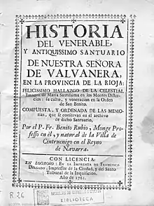 - Anguiano, Mateo de (1704). Compendio historial de la provincia de La Rioja, de sus santos y milagrosos santuarios. por Antonio Gonçalez de Reyes. p. 170. Consultado el 19 de agosto de 2019.
