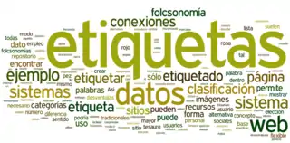 La diferencia entre las etiquetas y las palabras clave tradicionales es que las etiquetas son elegidas de manera informal y personal por los usuarios del repositorio. A diferencia de otros sistemas de clasificación, en los sistemas basados en etiquetas no es necesario que exista un esquema de clasificación previo (por ejemplo un tesauro) como base para la clasificación. En los sitios web que permiten etiquetar sus datos, la colección de etiquetas se llama folcsonomía.