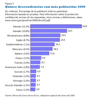 - «B04003. TOTAL ANCESTRY REPORTED». 2008 American Community Survey 1-Year Estimates (en inglés). United States Census Bureau. Archivado desde el original el 6 de junio de 2011. Consultado el 2 de abril de 2010.
