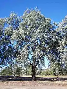 Eucalyptus melanophloia, comúnmente conocido como corteza de hierro de hojas plateadas (Silver-leaved Ironbark), es una especie de eucalipto nativo de Nueva Gales del Sur y Queensland en Australia.