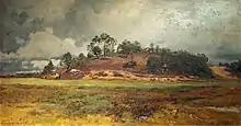 - Hannibals Grab (1900), eine Version in der Museumslandschaft Hessen Kassel[15], eine weitere ehemals im Besitz der Familie Georg von Siemens[16]. Das Motiv wurde insgesamt 18 Mal gemalt.[17] Nach dem Gemälde wurde eine Gruppe von Findlingssteinen in der Lüneburger Heide benannt.[18]