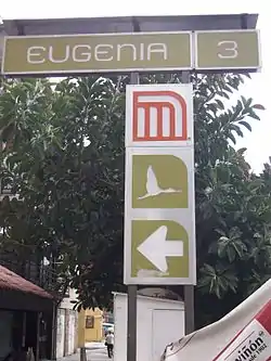 El nombre de esta estación proviene de una antigua quinta, llamada Quinta Eugenia que se localizaba en las cercanías del actual Eje 5 Sur Eugenia. El icono de esta estación es una cigüeña relacionado con el nombre Eugenia que significa "la bien nacida".[cita requerida] Forma parte de la cuarta ampliación de la línea 3 que va de Centro Médico a Zapata.