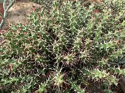 Se encuentra en huecos de suelo en placas de roca; a una altitud de ± 1225 m alt. Es una planta cercana a Euphorbia tetracanthoides. Sólo se conoce a partir del tipo recogido en 1993.