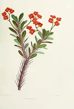 Euphorbia milii o corona de Cristo es una planta fanerógama del género Euphorbia. Es un arbusto espinoso que puede alcanzar los 150 cm de altura.