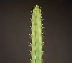 Es un arbusto densamente ramificado y suculento que alcanza un tamaño de 1 m de altura y 1,2 m de diámetro, las ramas de 30 cm de largo, con (4 -) 5 ángulos, de 1-2 cm de grosor; ángulos muy superficialmente dentados, con dientes de 5-15 mm; espinosas.