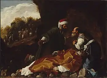 La resurrección de Jesús es la creencia religiosa cristiana según la cual, después de haber sido condenado a muerte y ser crucificado,[5] Jesús fue resucitado de entre los muertos, como «primicias de los que durmieron» (1 Corintios 15:3-4),[6] siendo exaltado como Cristo (Mesías) y Señor.[7][8][9] Las principales apariciones de Jesús resucitado en los evangelios canónicos (y, en menor medida, otros libros del Nuevo Testamento) son reportadas como sucedidas después de su muerte, entierro y resurrección, pero antes de su ascensión.[10] Entre estas fuentes, la mayoría de los estudiosos creen que la Primera Epístola a los Corintios es la más antigua,[11] escrita por el apóstol Pablo, junto con Sóstenes, c. 55 d. C.[12] Por último, el apócrifo Evangelio de los Hebreos relata una aparición a Jacobo, el hermano de Jesús.[13]